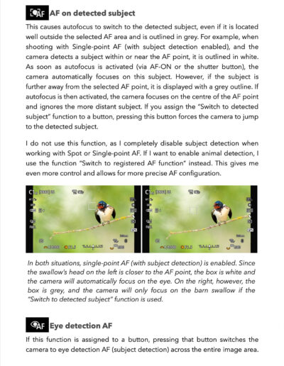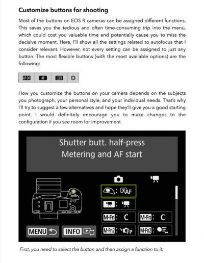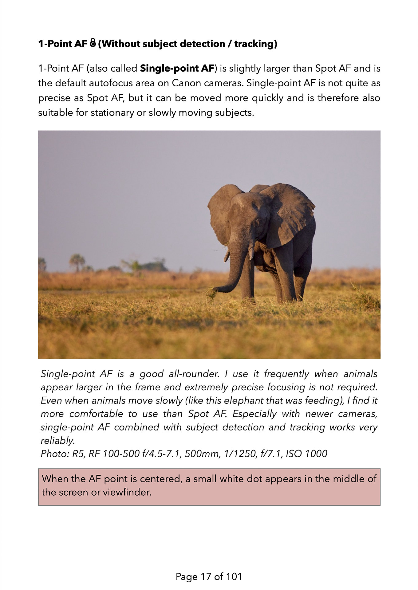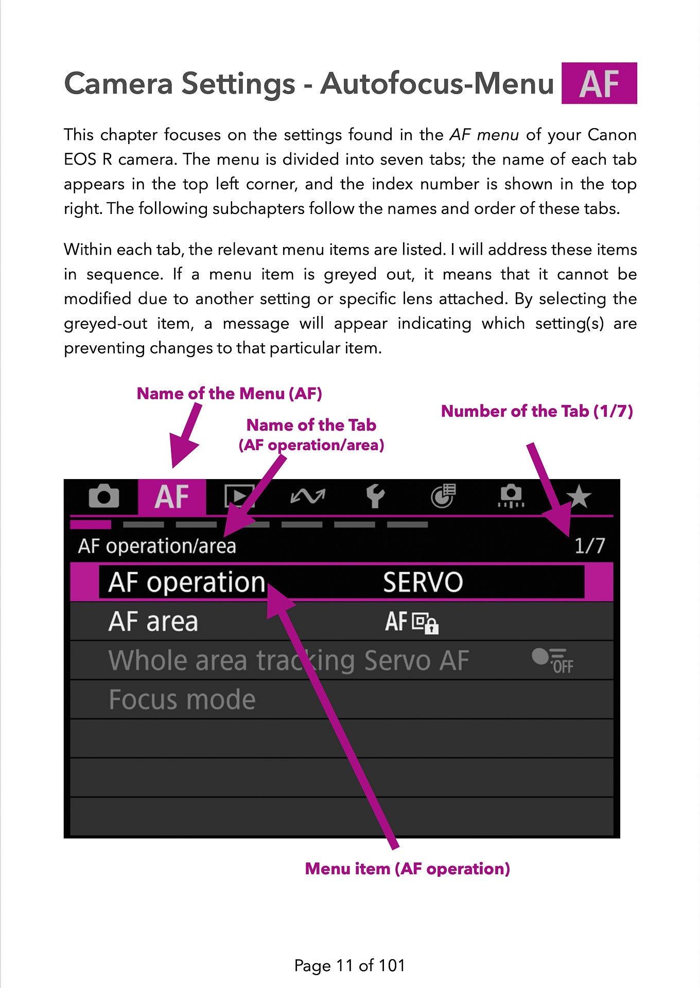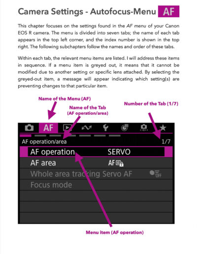 Tailored to your camera: Certain settings vary between camera models. In the e-book, I address the specific features of various models.